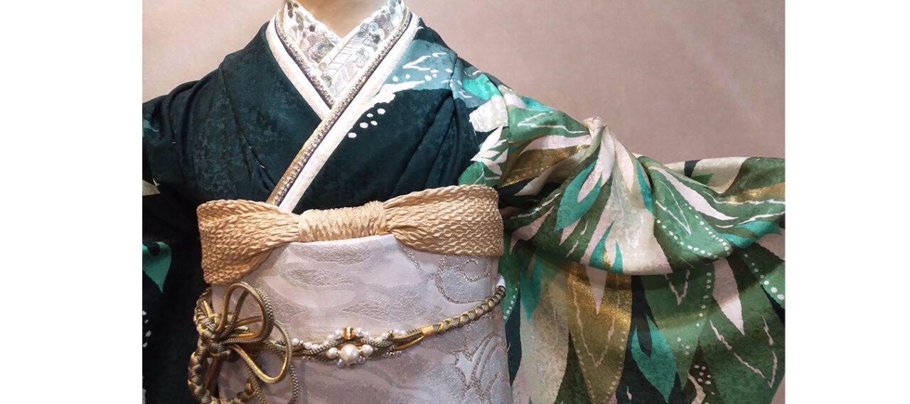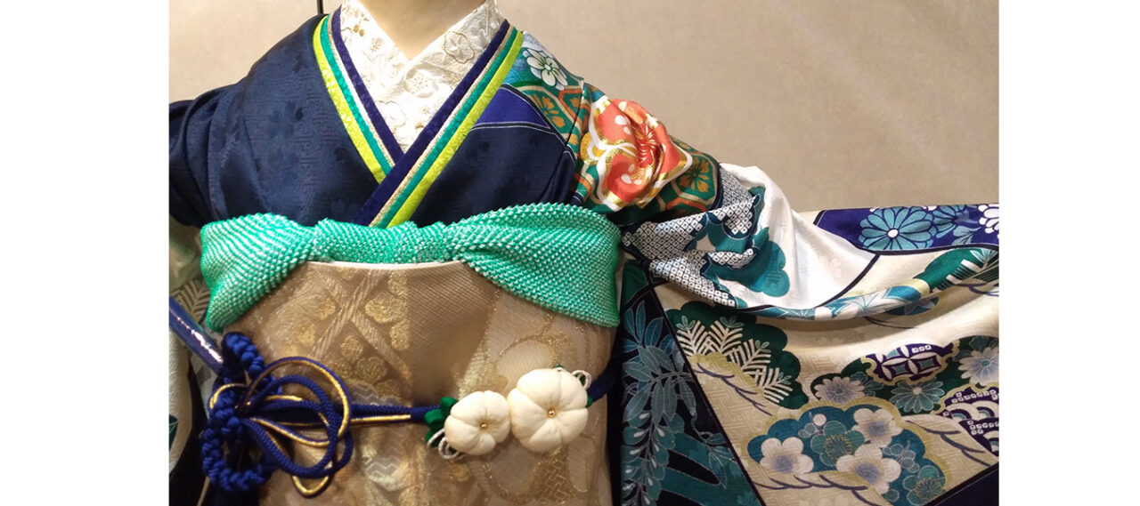 白地に華やかな柄が入ったお振袖を選んで頂いたお嬢様。 ロープ編みとフィンガーウ...