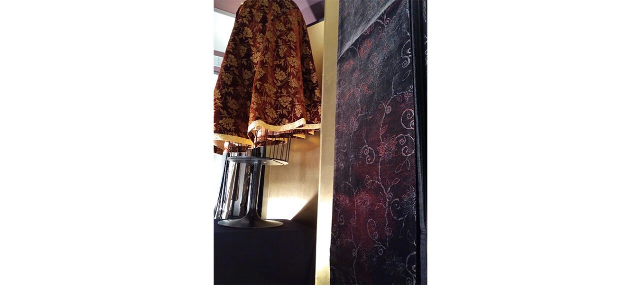 誉田屋源兵衛さんの展示会はいつもしつらえが違って面白い。 これは帯?と思えるよ... -
