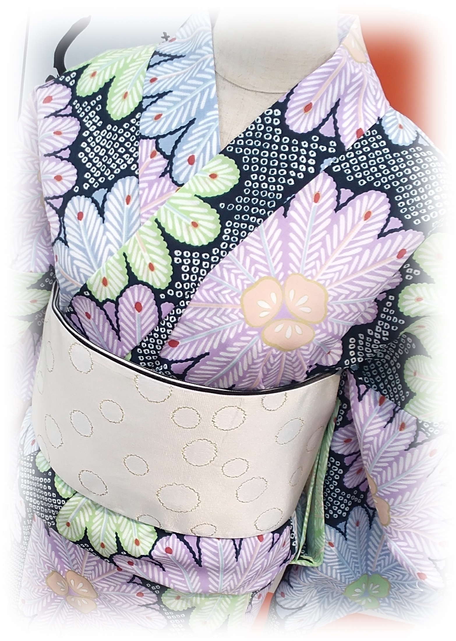 水玉模様の半巾帯で可愛さUP!
