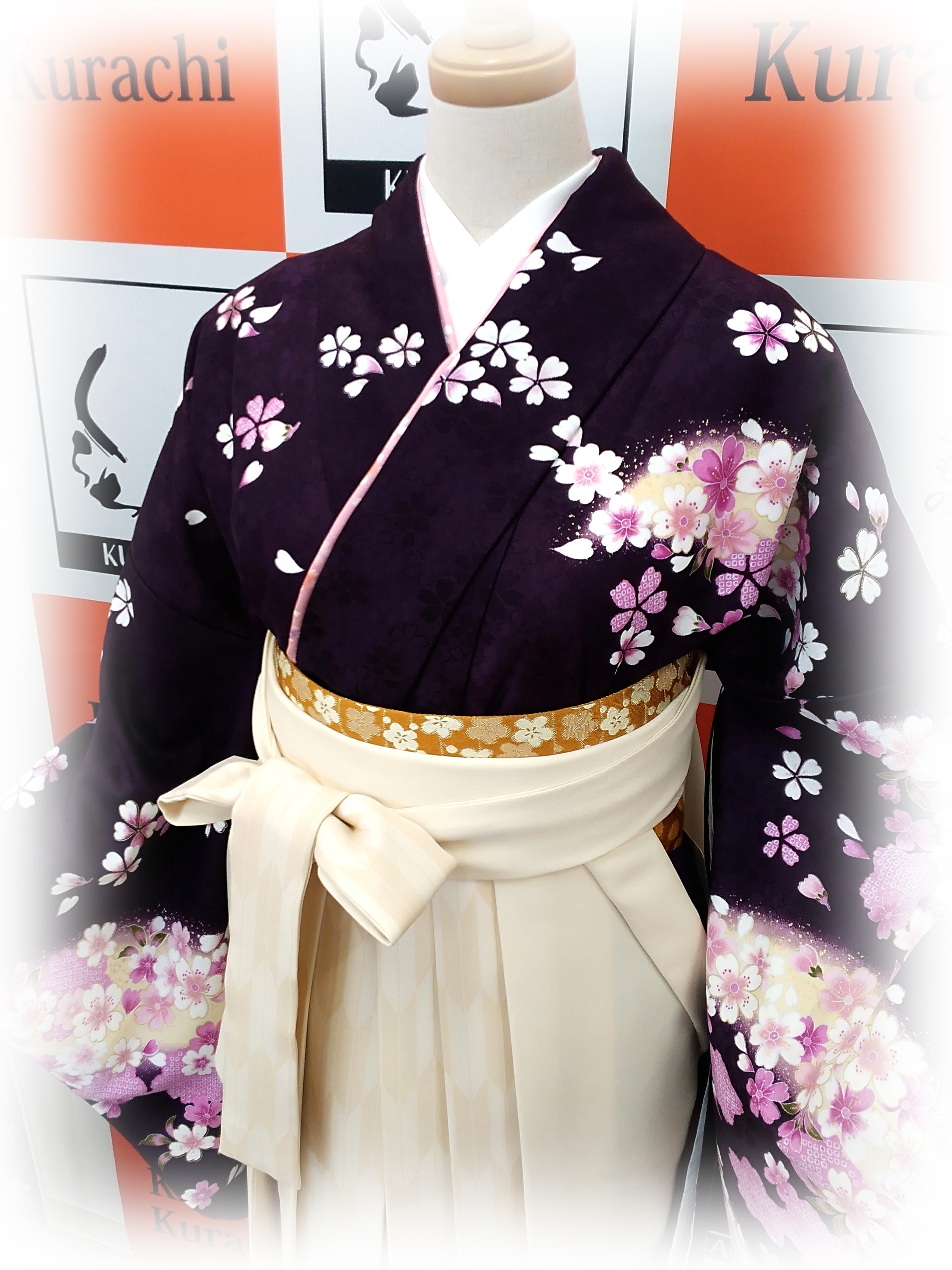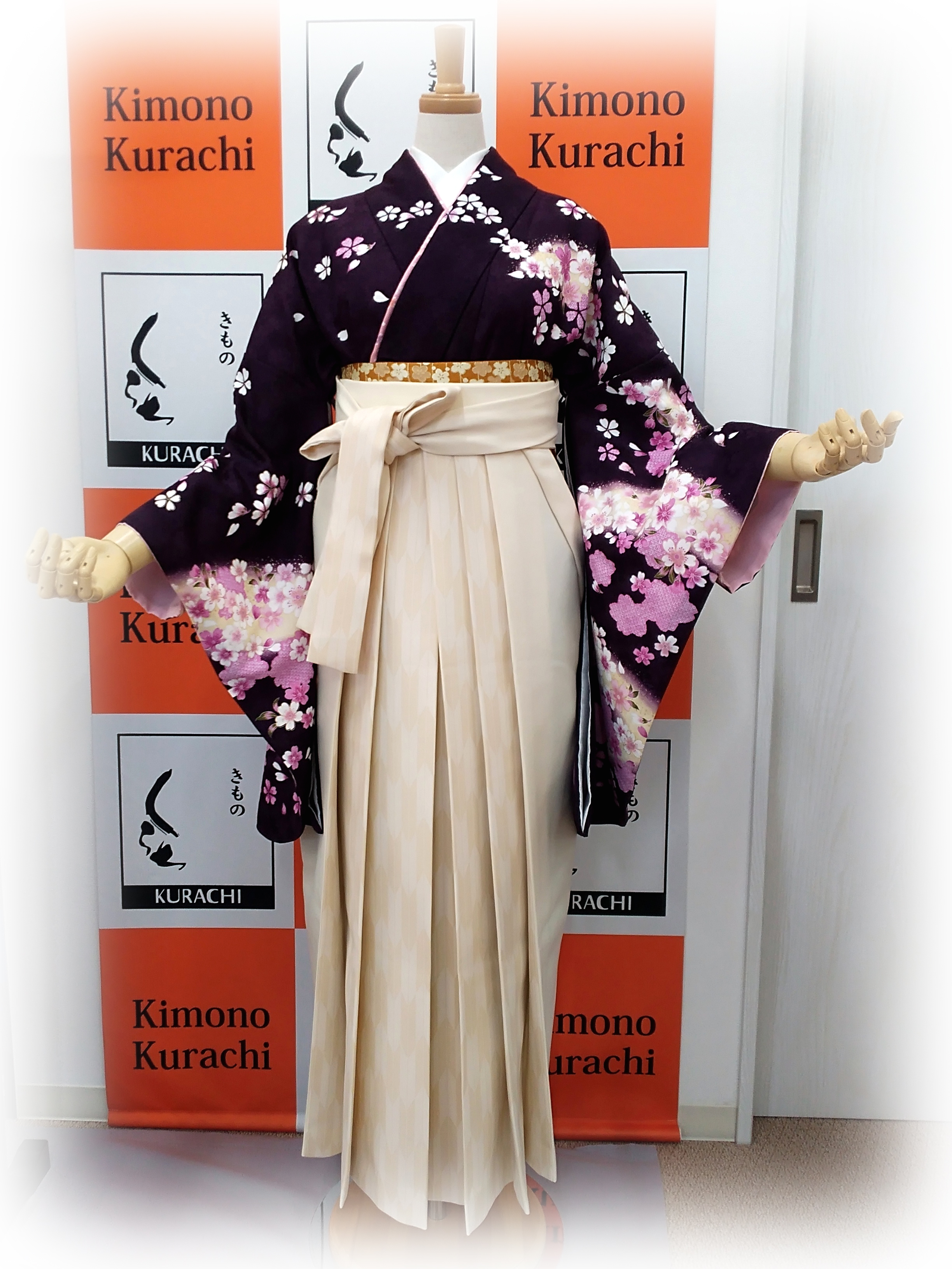 上が濃い紫色の小振袖なので、下は明るい白色の袴を持ってきました。