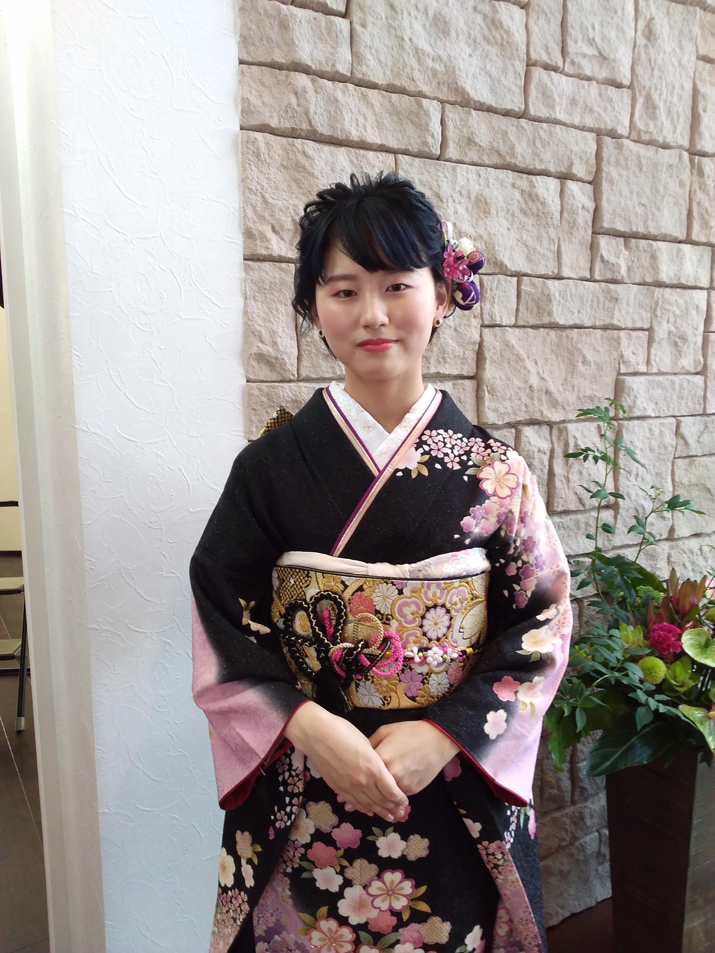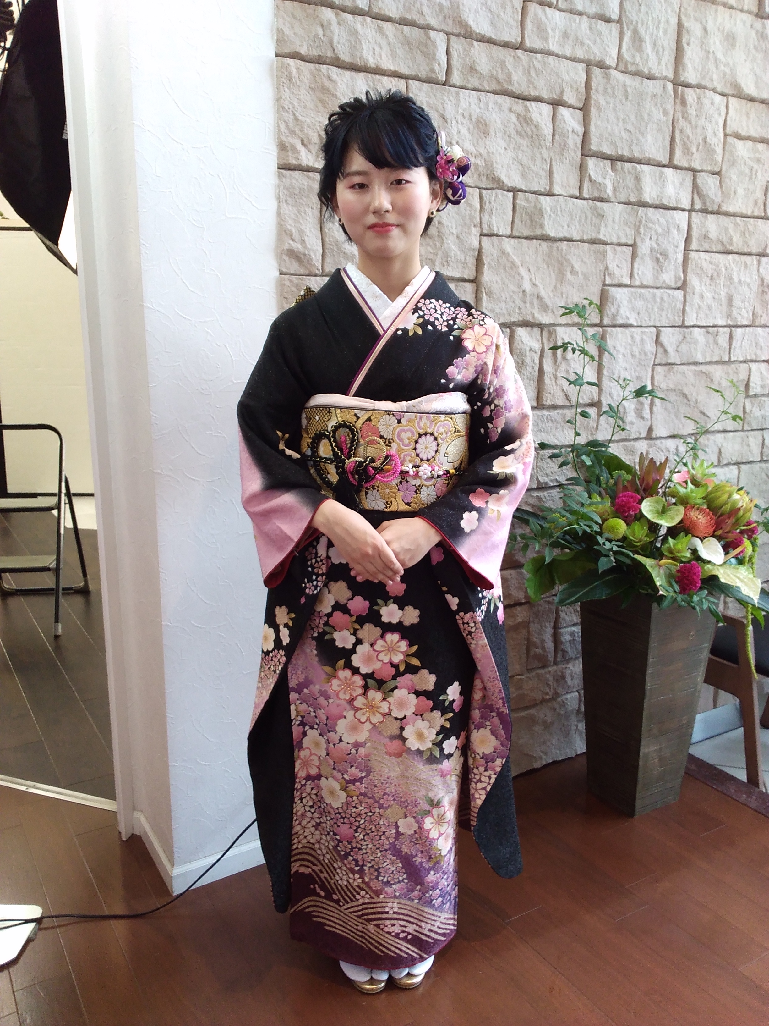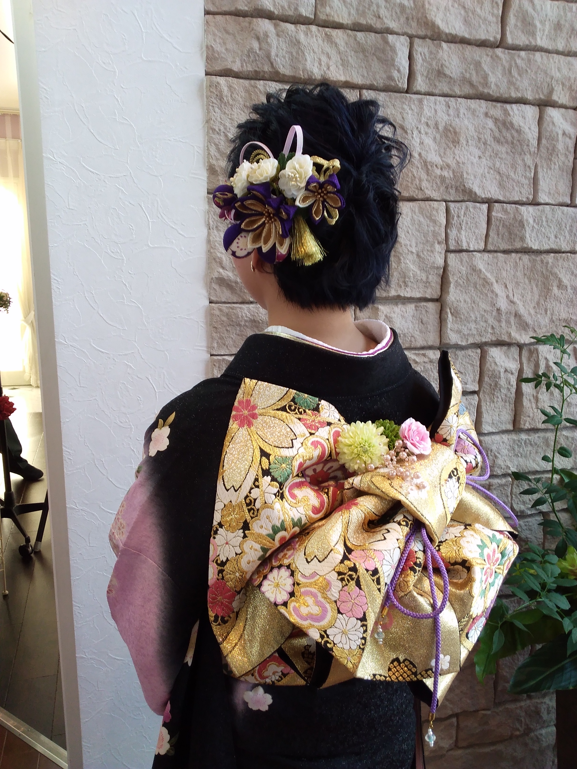 飾り紐をつけた帯結び、後ろ姿も素敵ですね。