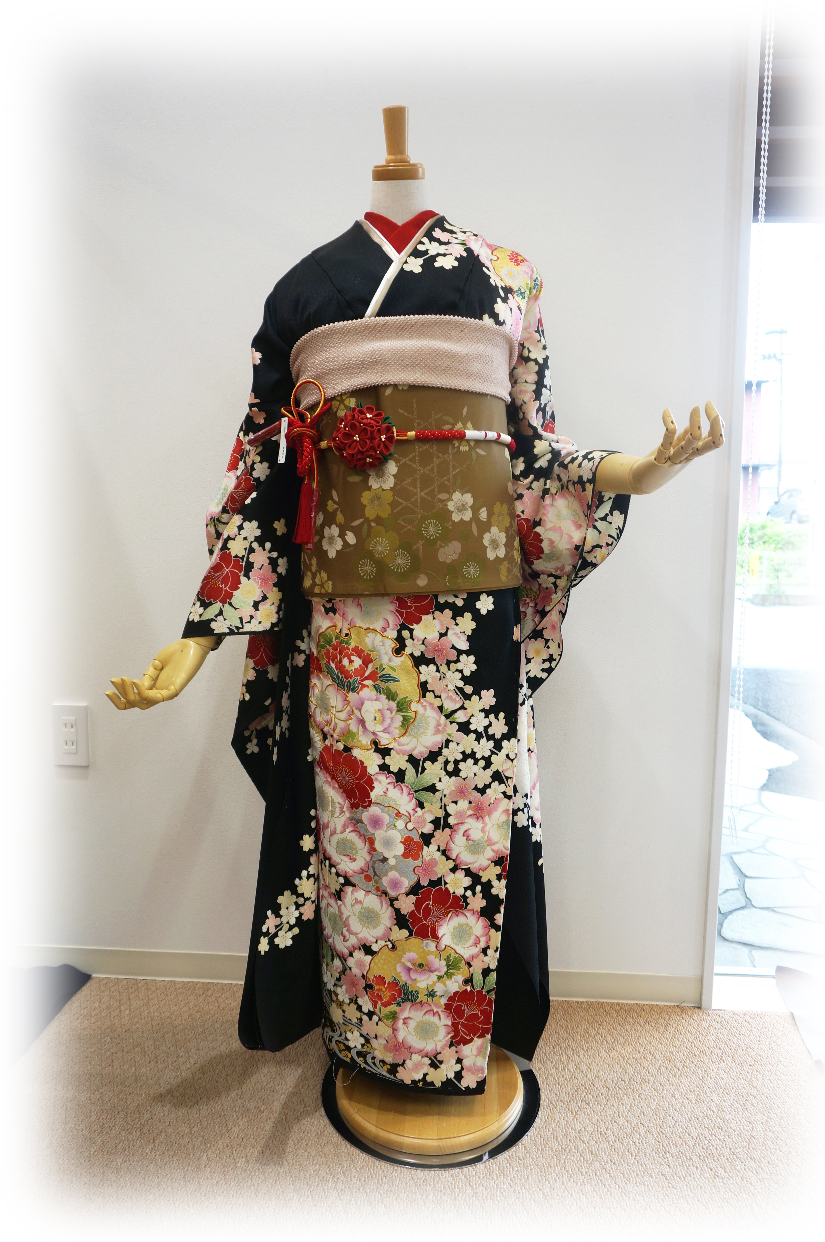 黒色ベースのお振袖で、コーディネートを組んでみました!