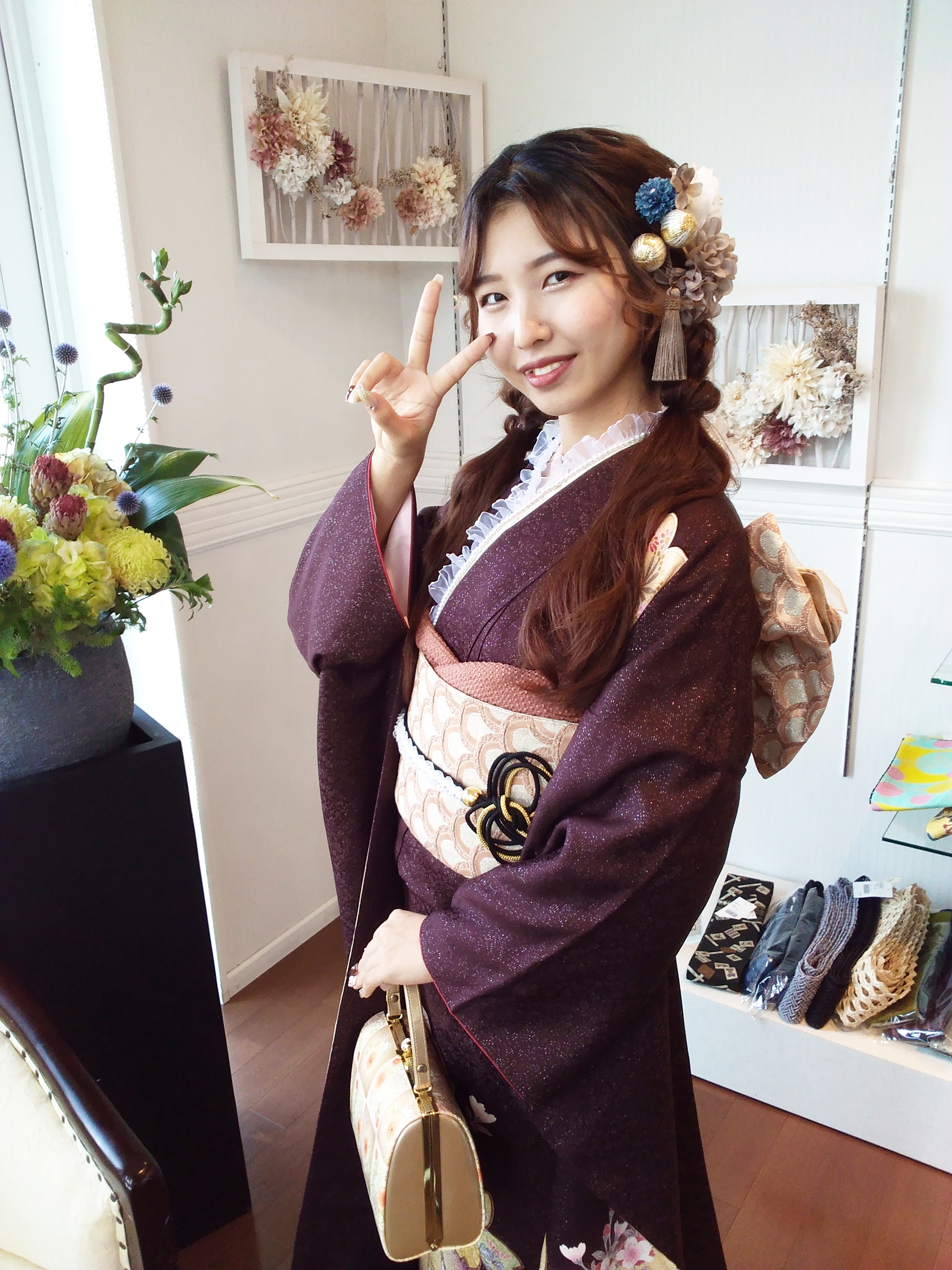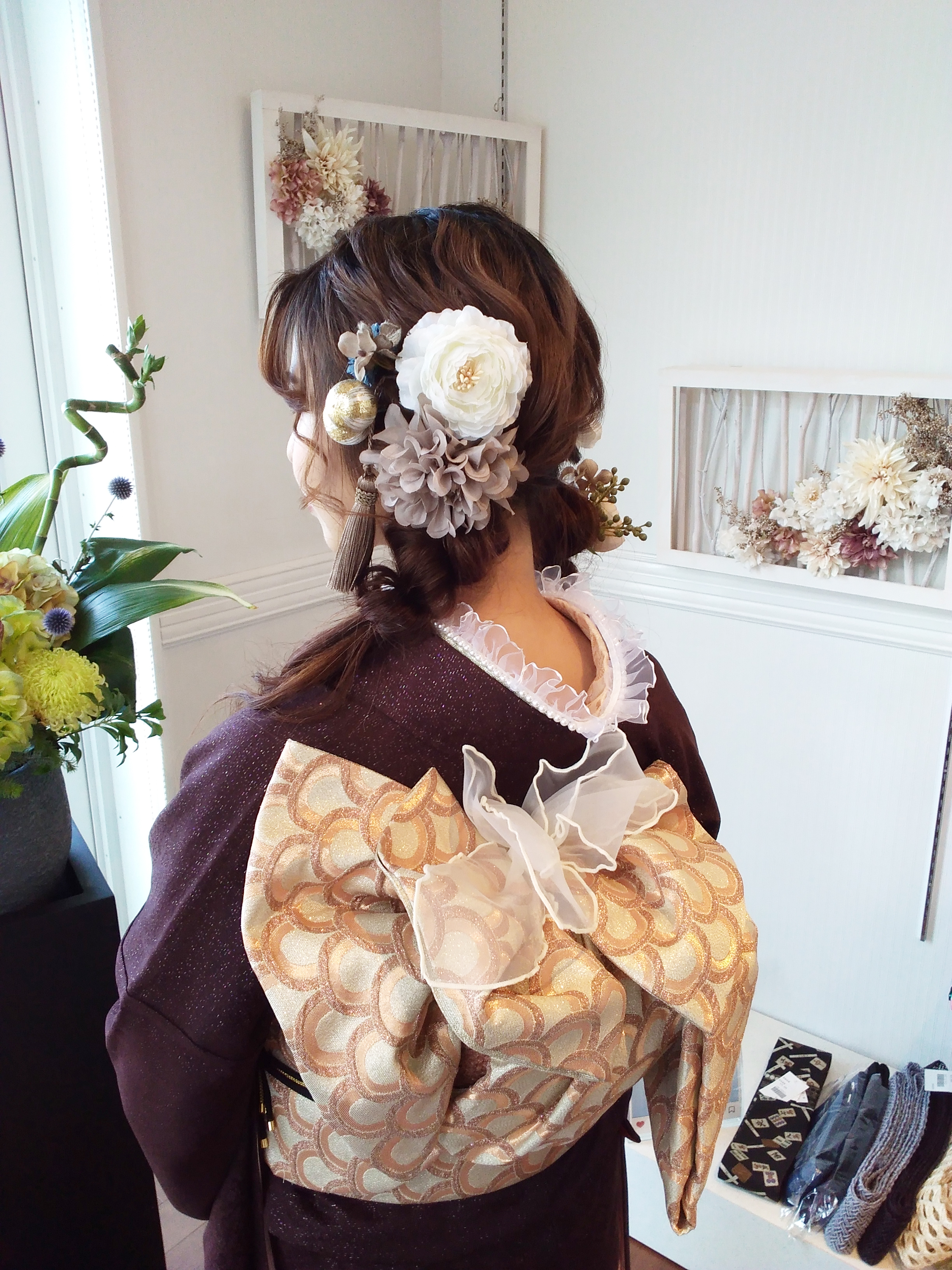 髪飾りも含め、全体のコーディネートのカラーが統一されていて、オシャレですね。