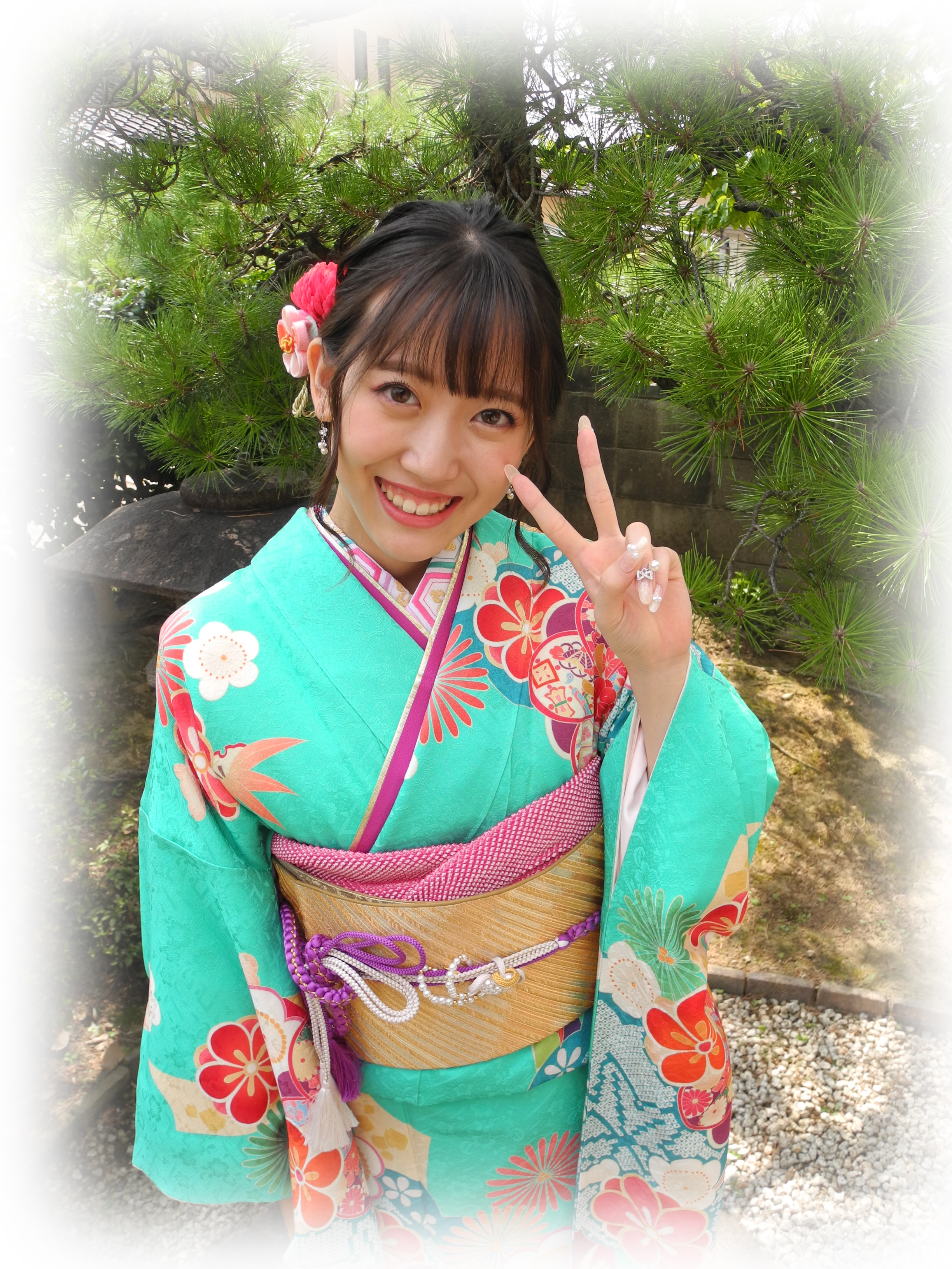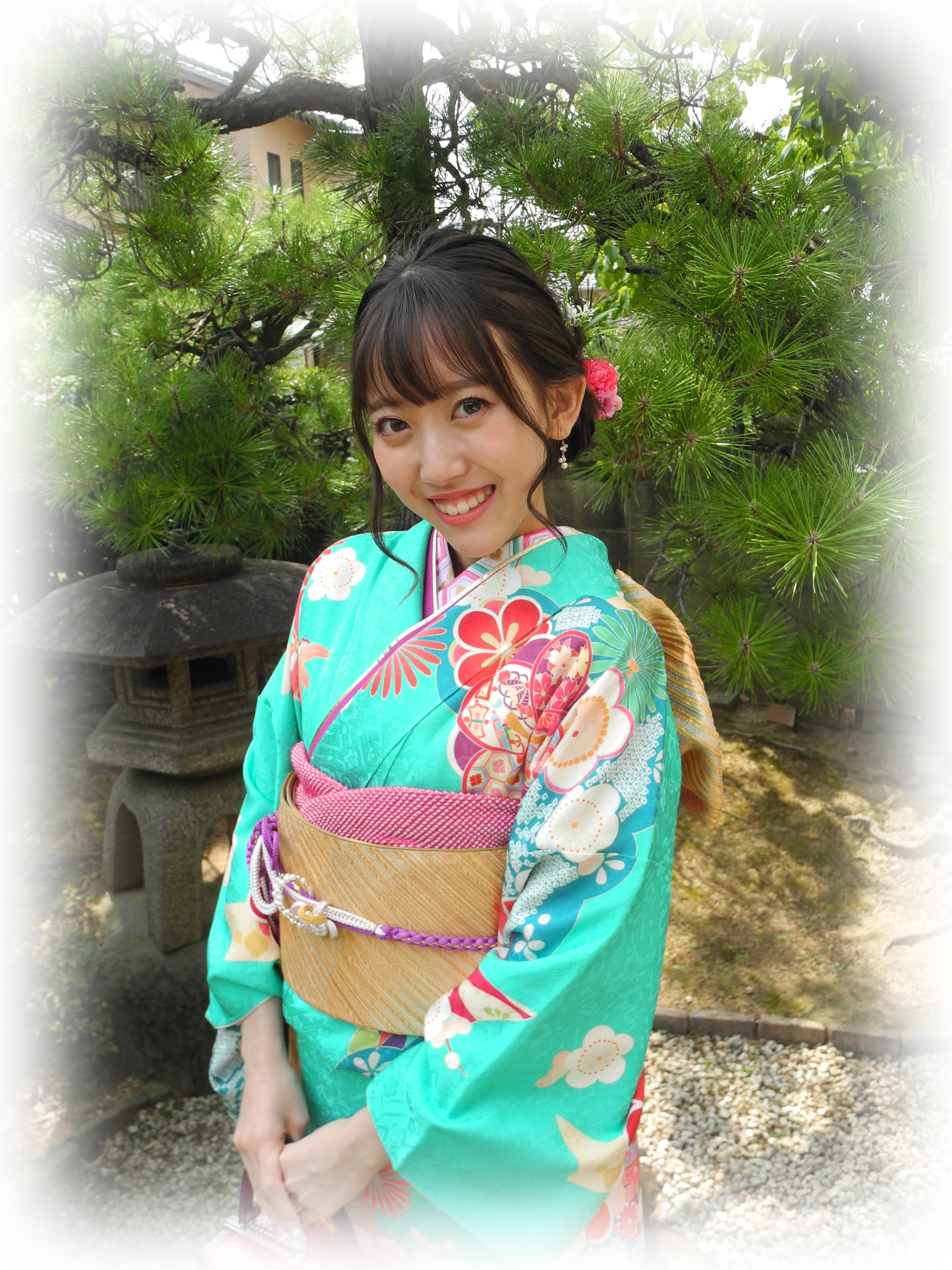 パキッとした水色のお振袖。