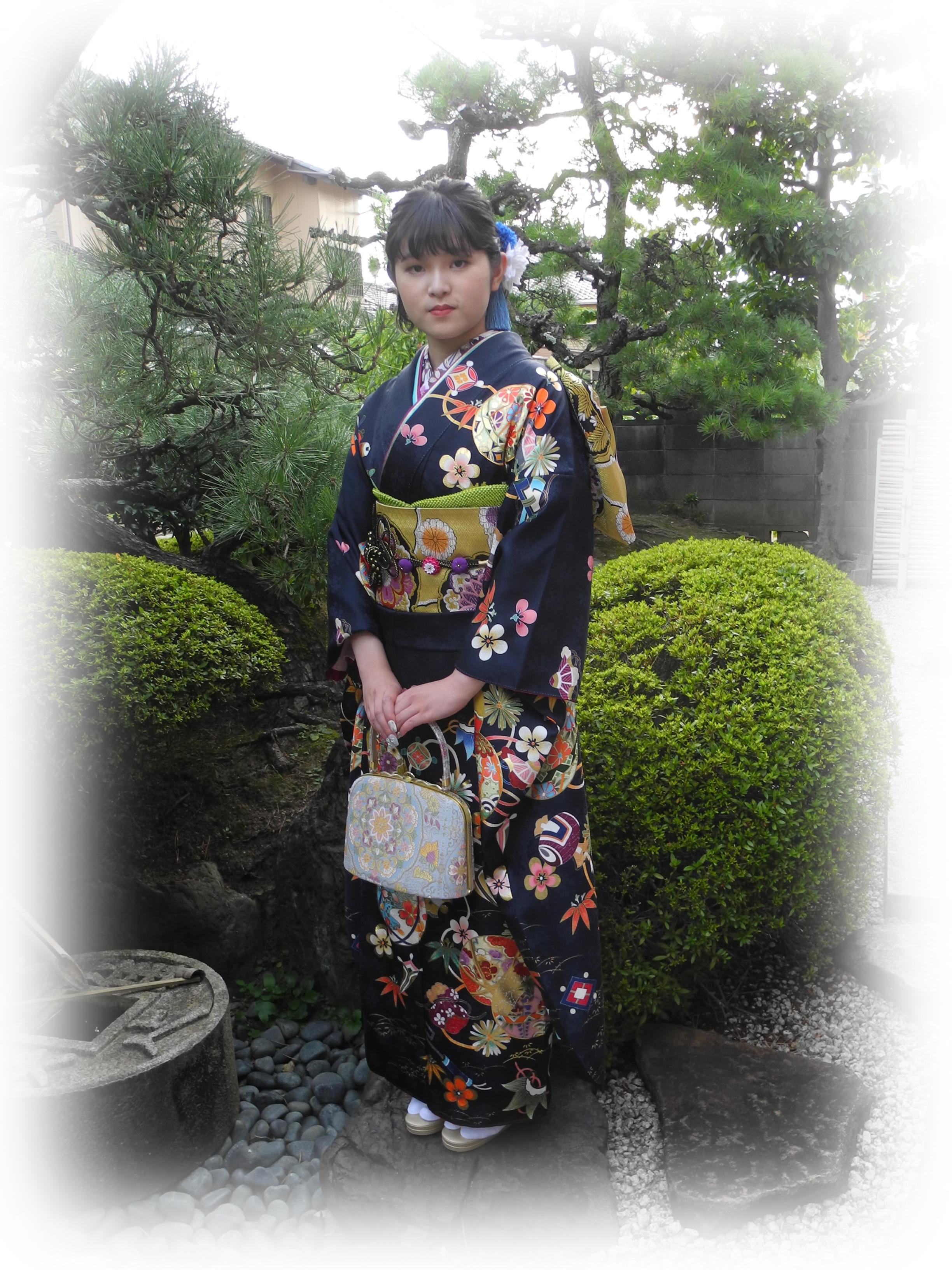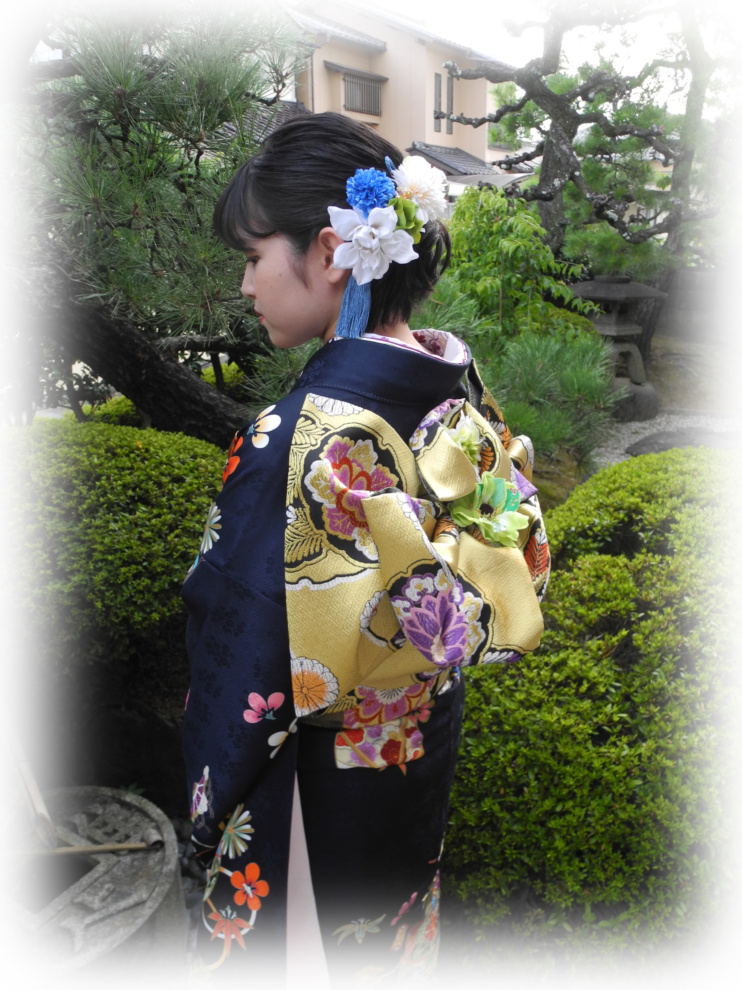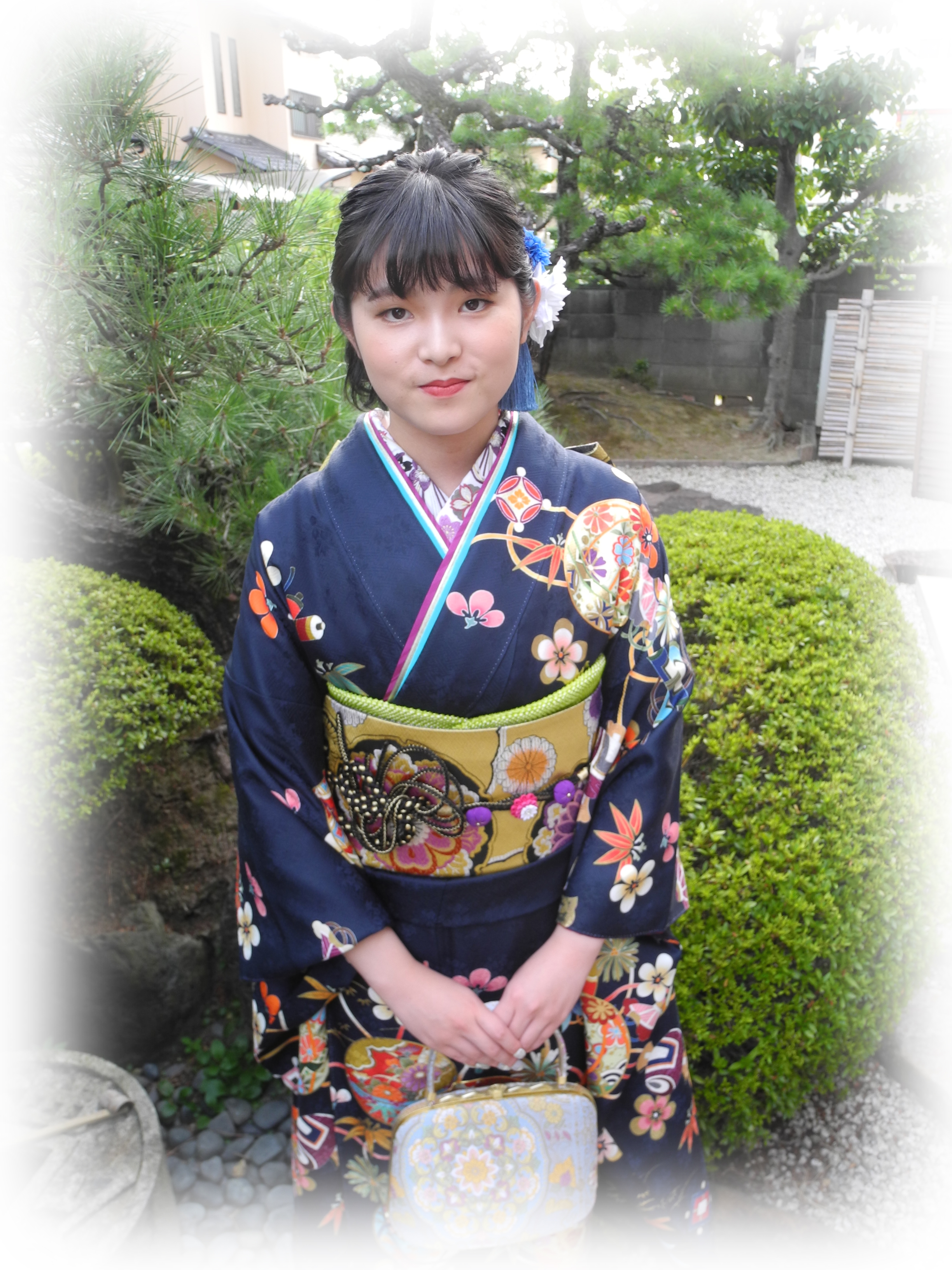 深い紺色のお振袖が、落ち着いたお嬢様の雰囲気にお似合いです⭐