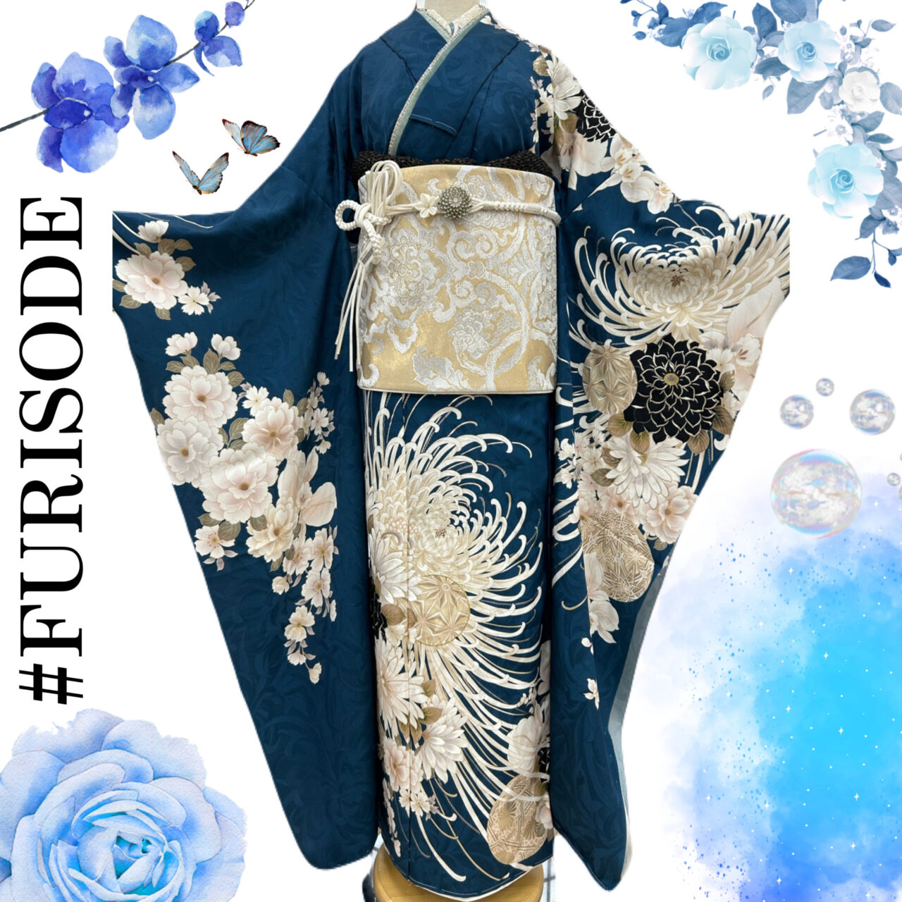 本日のスタッフ推し振袖はコチラ! 大きな乱菊が印象的なネイビーブルーのお振袖。... -