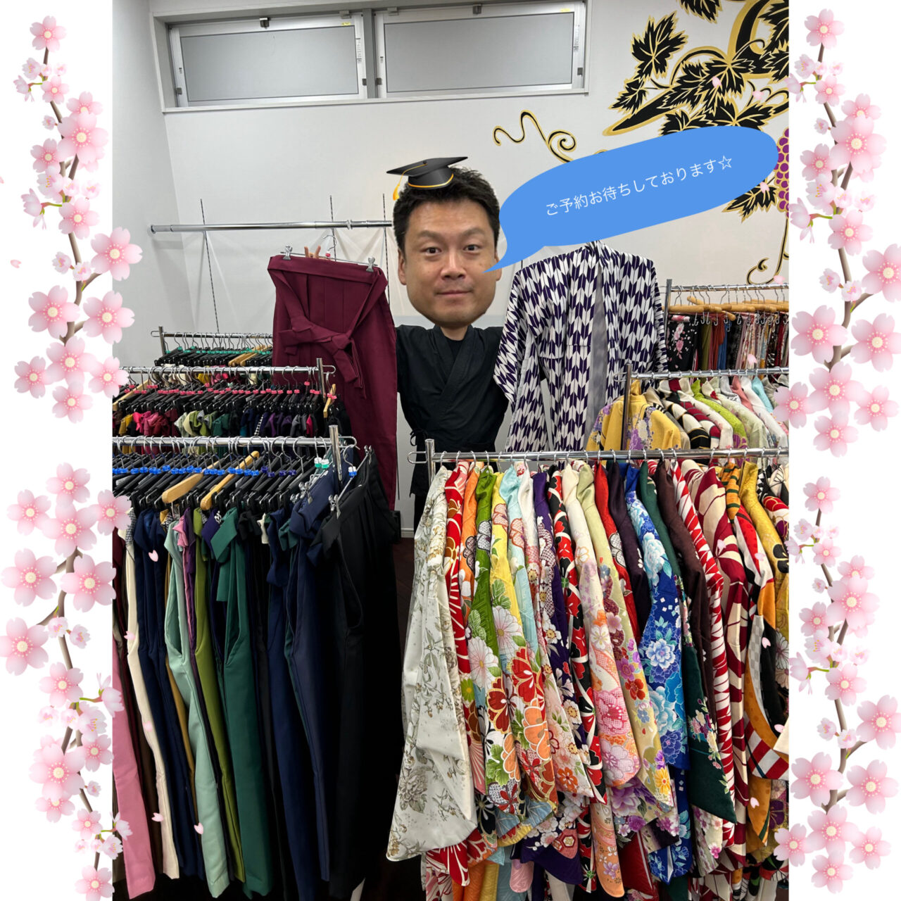 お待たせしました! 卒業はかまレンタル始まりました~! 店頭に小振袖、袴、巾着... -