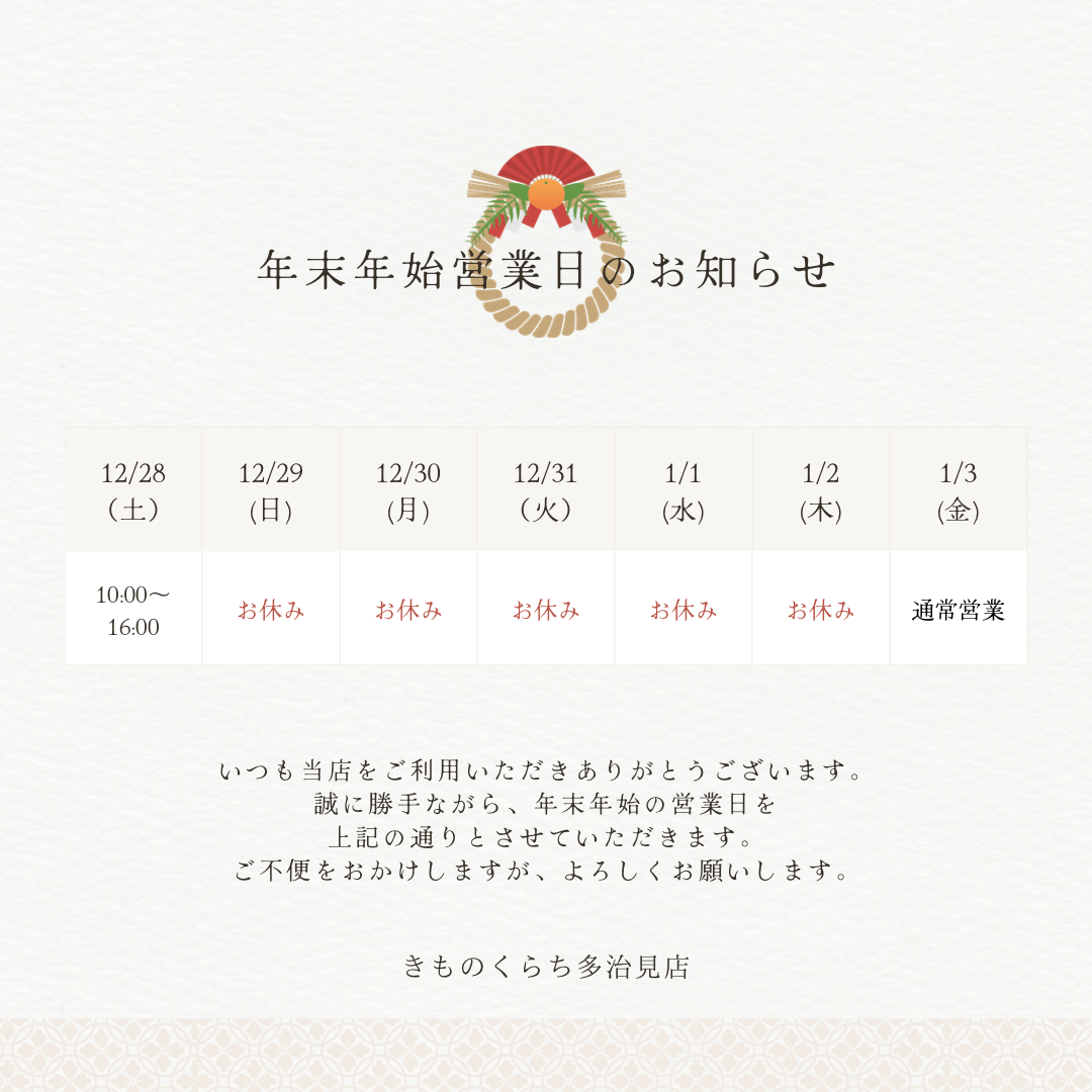 年末年始のご案内です。 12月28日(土)は16時までの営業になります... -