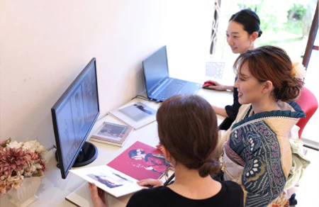 着物専門店の併設スタジオとしては異質といえるほどのこだわりを持ち、呉服店の枠を超えたクオリティを追求しています。