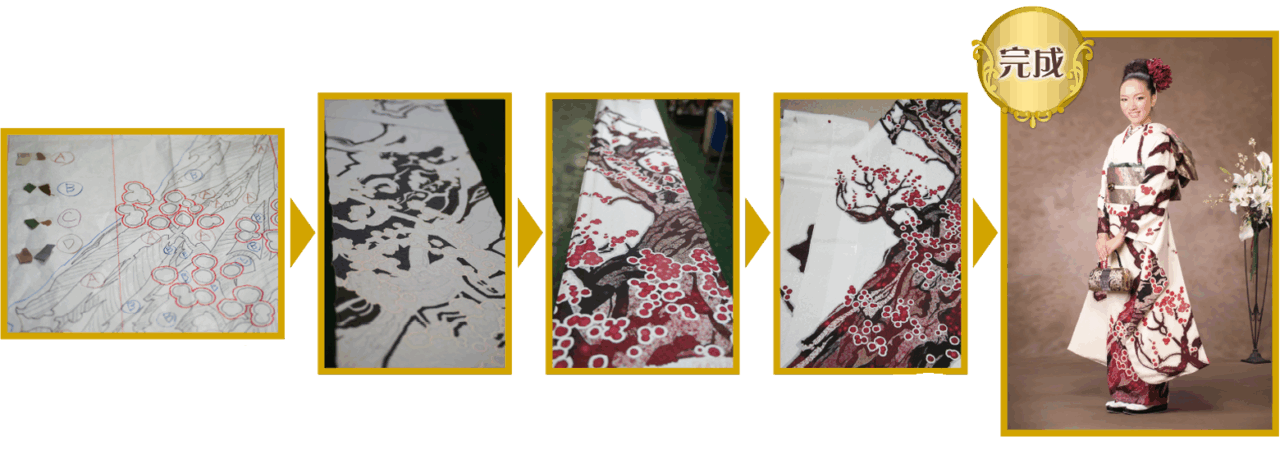 打合せ内容からデザインを決めて反物に図案を描きます。